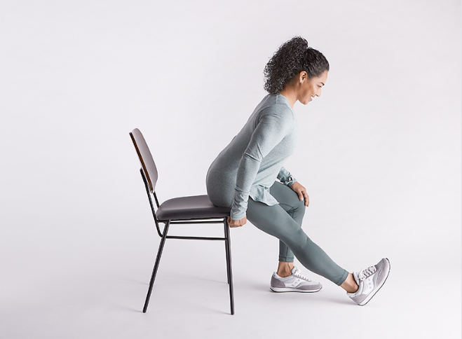 - Hold a chair for support.