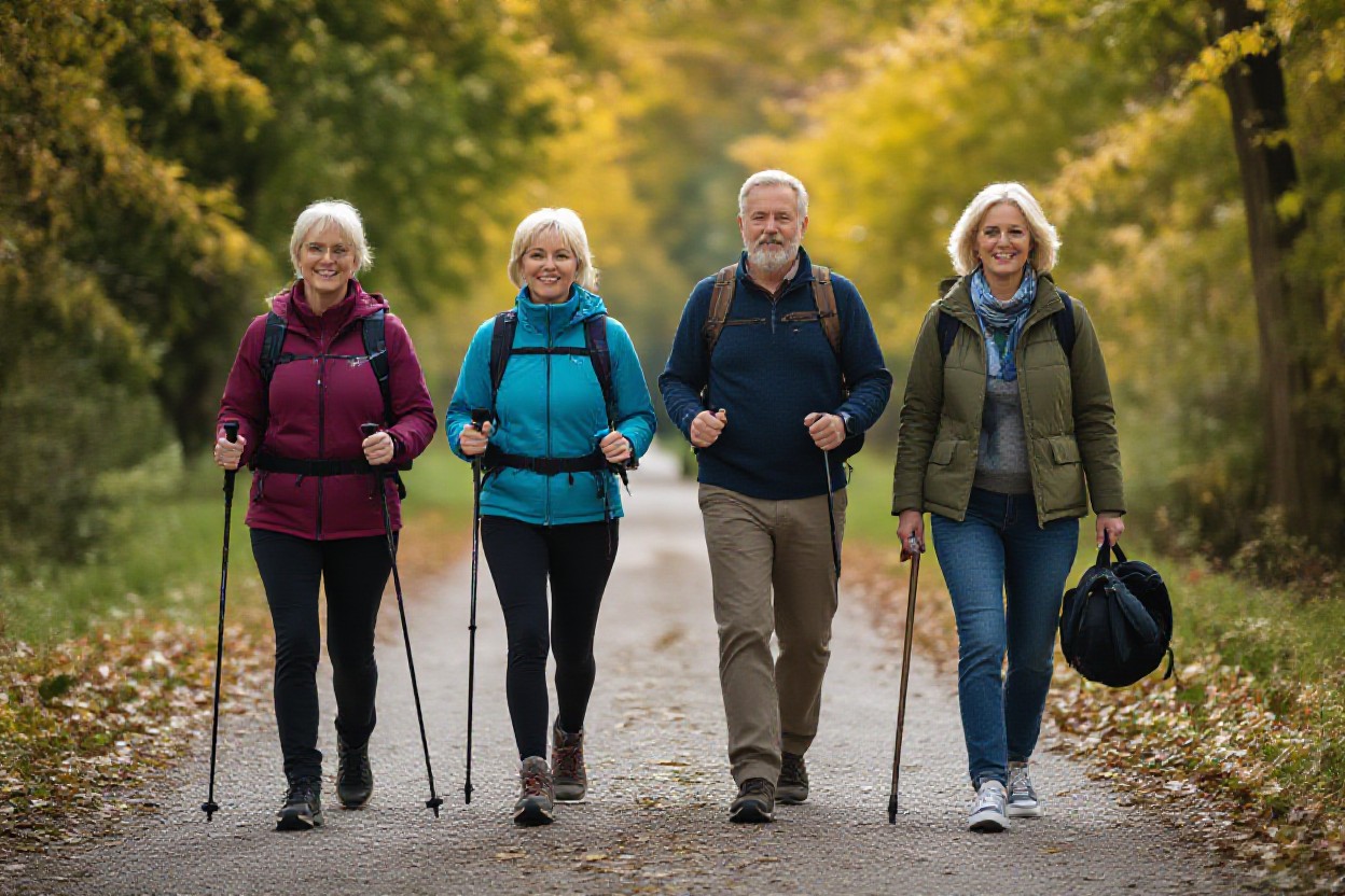 - Nordic Walking adds strength and balance benefits.
